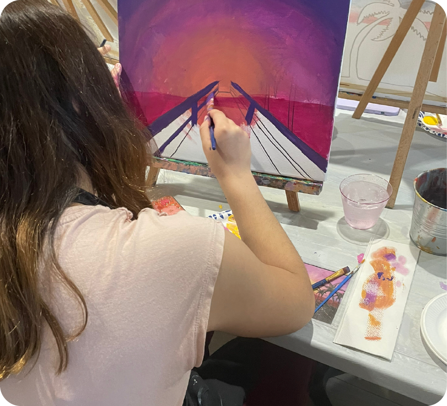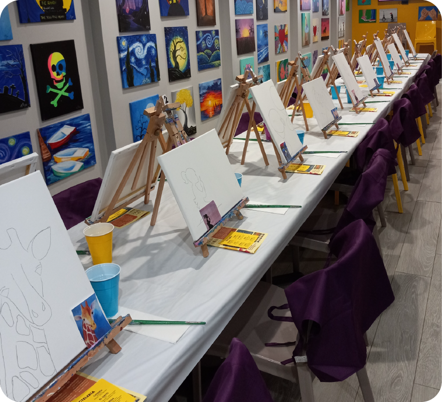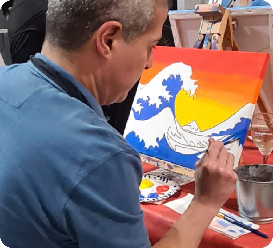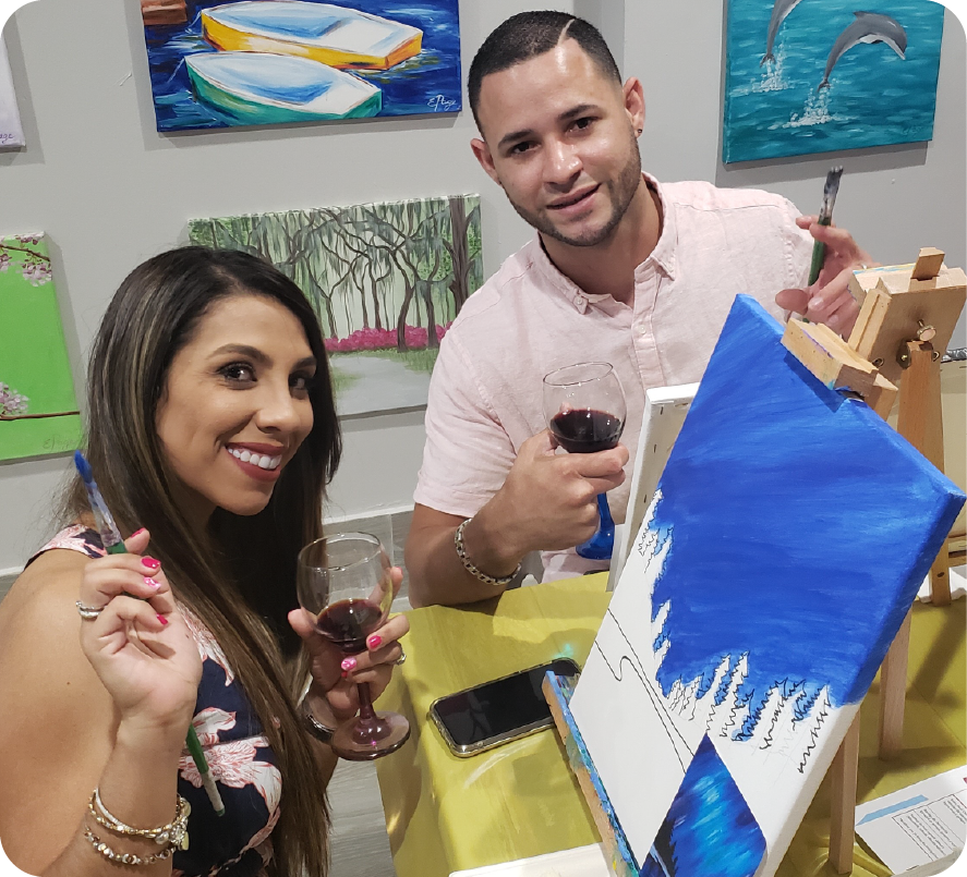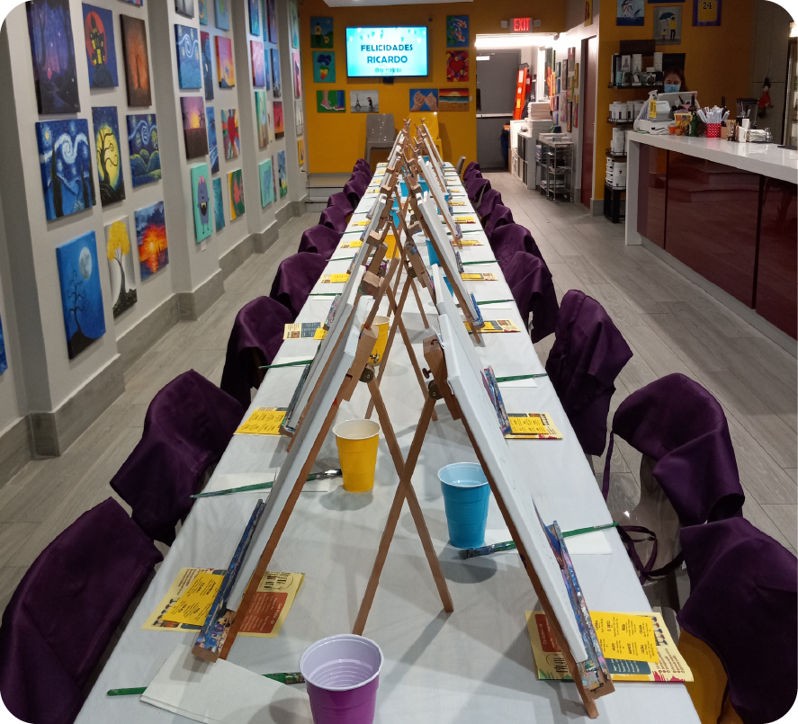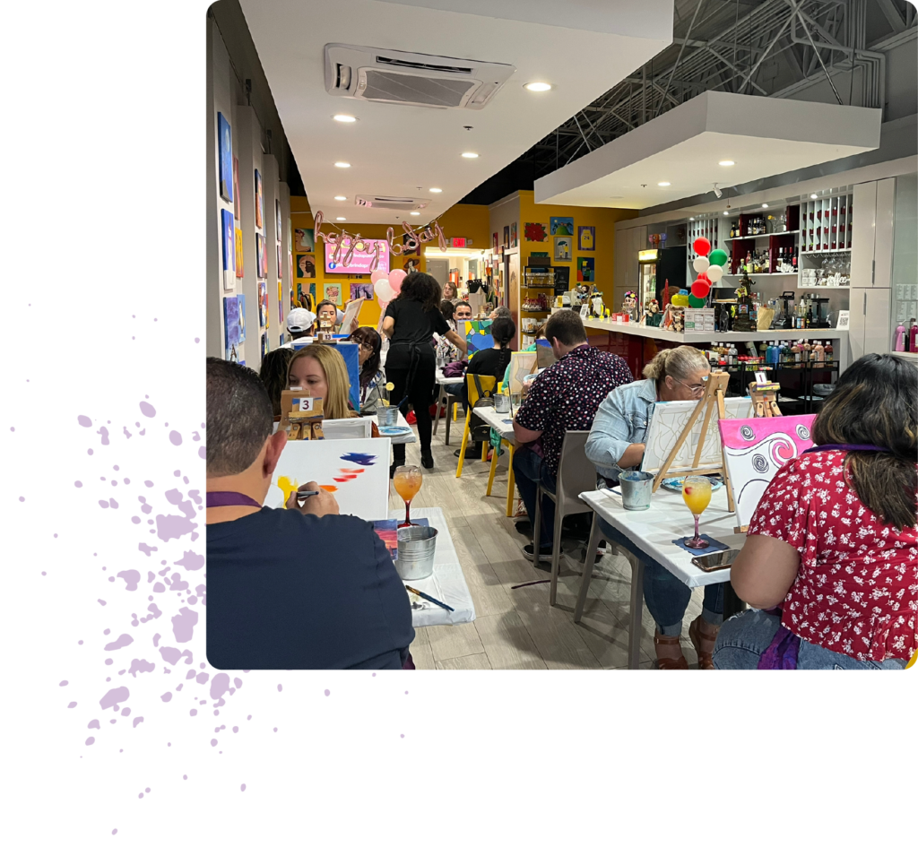 Las experiencias de arte y entretenimiento de Pinta y Brinda son un oasis en la rutina para ayudar a fomentar la desconexión a través del arte y la creatividad.